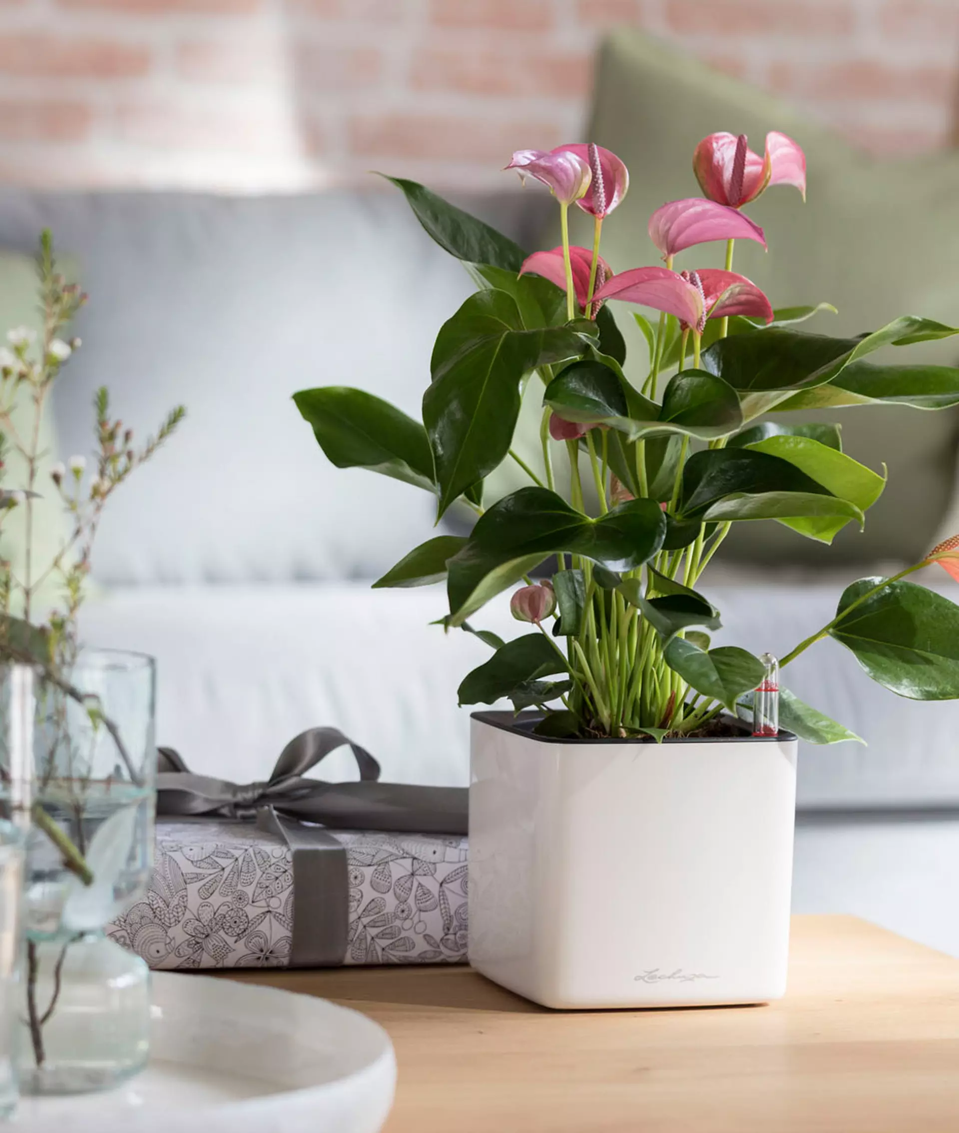 Šiuolaikinių augalų mylėtojams patiks egzotiškas anturis mūsų elegantiškame CUBE Premium vazone. Dėl paprastos pagaliukų sistemos augalai gauna optimalų vandens tiekimą, todėl jų persodinti nereikia.