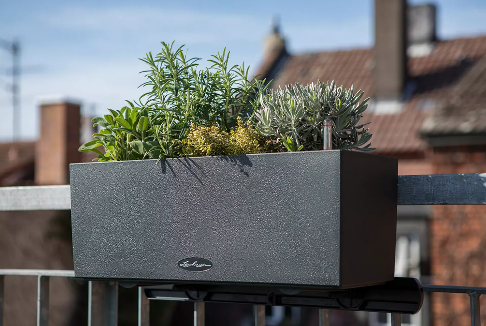 BALCONERA Stone vazonai puikiai tinka salotoms, žolelėms, pomidorams ar ridikams. „LECHUZA“ laikikliai užtikrina vazono stabilumą ir gali būti prailginti, jei grotelės yra toliau viena nuo kitos.