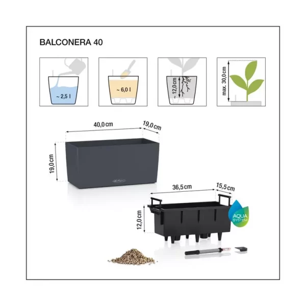 Populiarusis LECHUZA BALCONERA ne tik papuošia balkoną ar terasą stilingais akcentais, bet ir užtikrina patogią bei efektyvią augalų priežiūrą.
