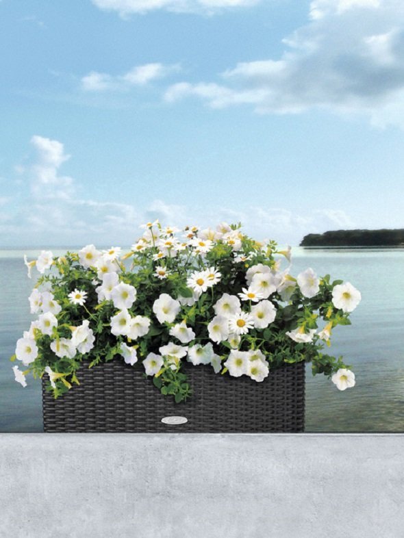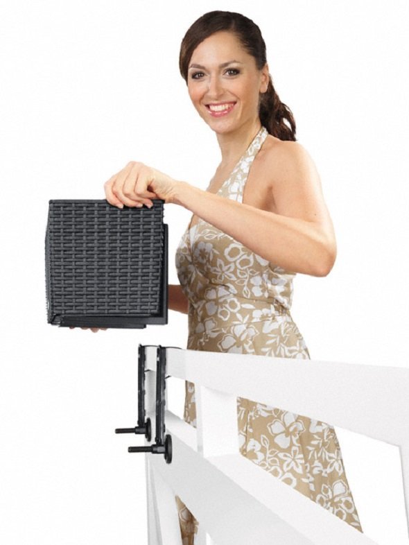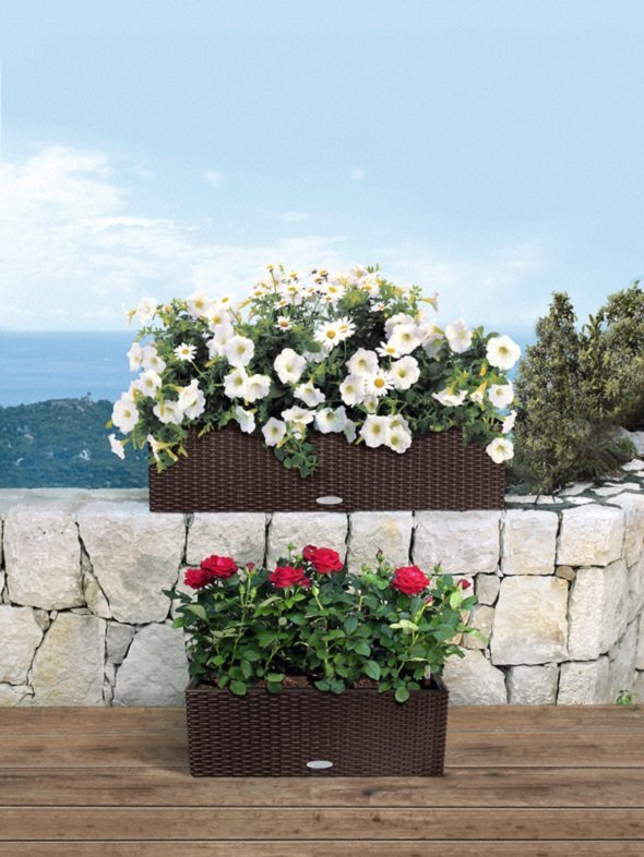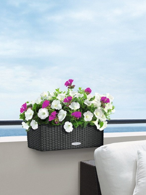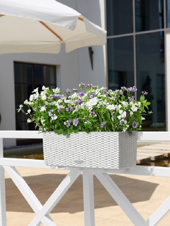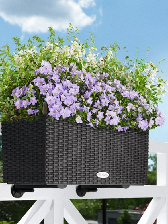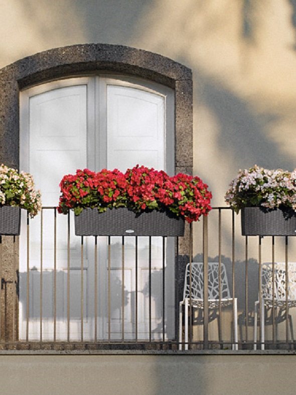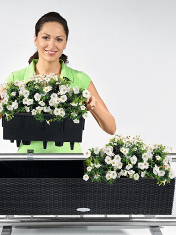 - Tvirtinimui prie balkono turėklų ar sienų reikalingi atskirai įsigyjami balkono dėžių laikikliai.