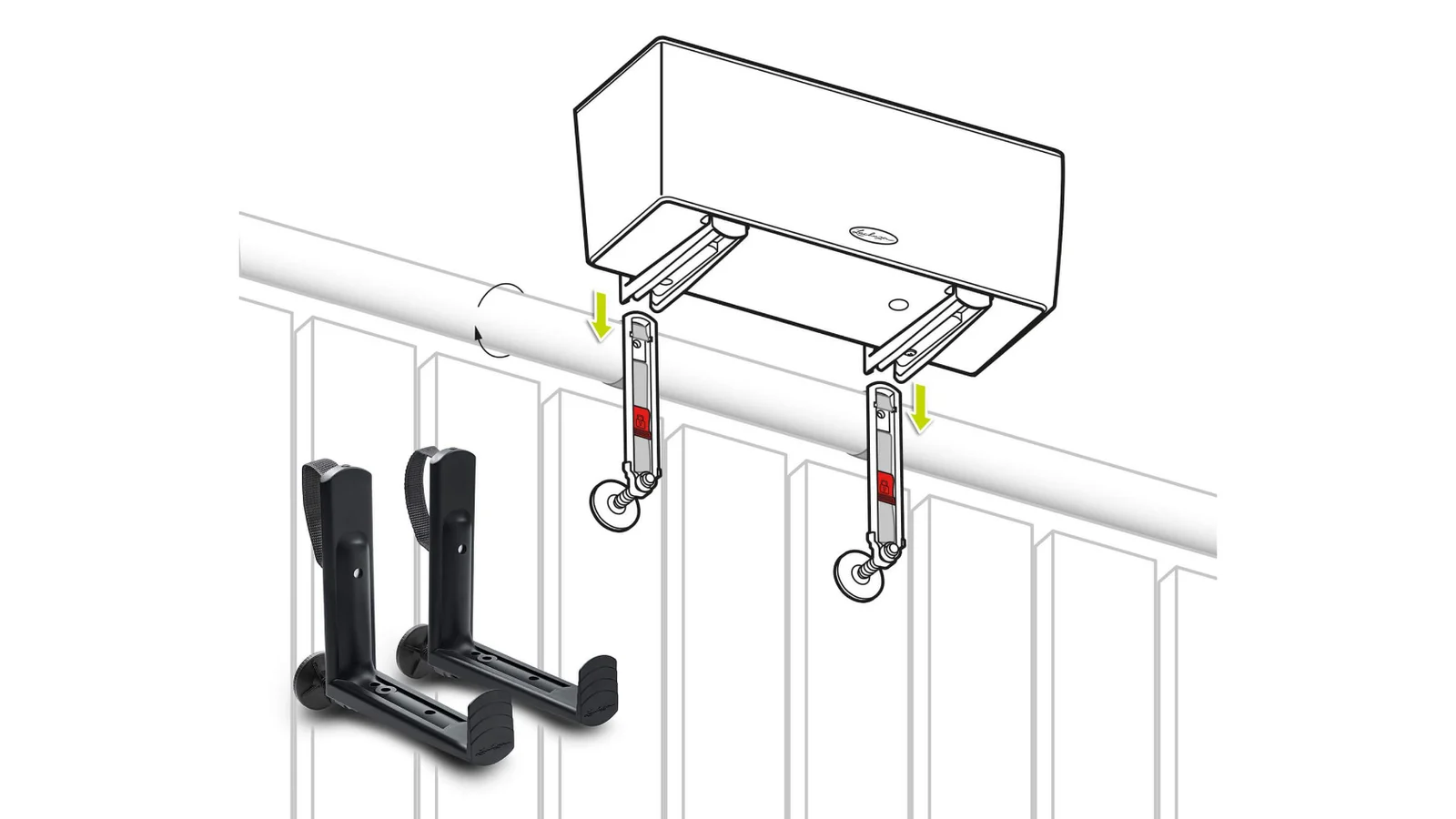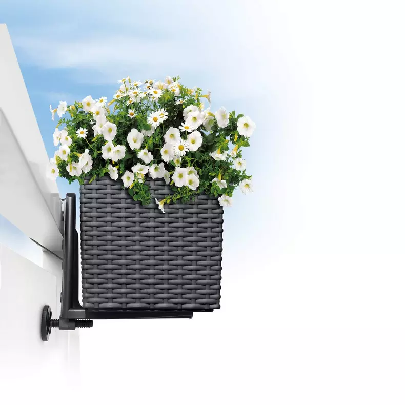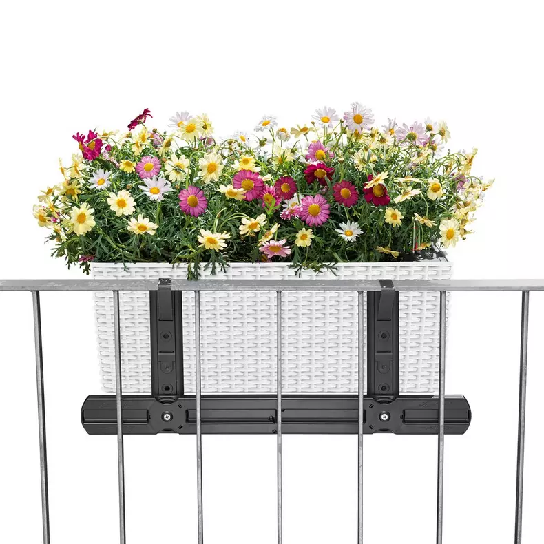 Dėl išmanaus dizaino laikiklis lieka paslėptas už BALCONERA vazono, todėl iš priekio atrodo nepastebimai ir estetiškai. Reguliuojami varžtai leidžia tiksliai priderinti laikiklį prie įvairių turėklų.