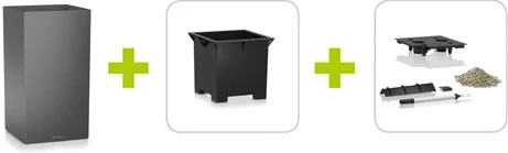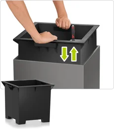 Vienodos formos juodas augalų įdėklas su patogiomis įgilintomis rankenėlėmis leidžia lengvai perkelti augalus tarp aukštų ir žemų CANTO Premium vazonų. Tai praktiškas sprendimas, kai norite greitai atnaujinti interjerą ar pakeisti sodinimą.