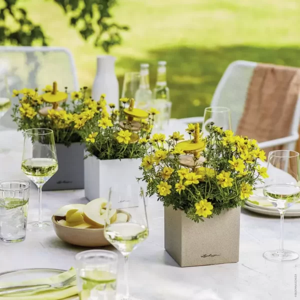 Integruota lazdelių laistymo sistema su vandens rezervuaru pasirūpina, kad augalai būtų visada pakankamai drėgni. Vandens lygio indikatorius parodo, kada reikia papildyti vandenį – todėl augalai ilgiau išlieka sveiki ir gyvybingi be kasdienės priežiūros.