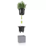 Išorinis vazonas + vidinis vazonas + kaištis drėkinimui + indikatorius