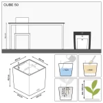 Pagal formą ir spalvas CUBE 40 ir CUBE 50 puikiai dera su aukštesniais CUBICO 40 ir CUBICO 50 modeliais, leidžiančiais sukurti harmoningą augalų kompoziciją. Be to, CUBE 50 išsiskiria galimybe keisti augalų įdėklus pagal poreikį – patogus ir lankstus sprendimas Jūsų augalams.