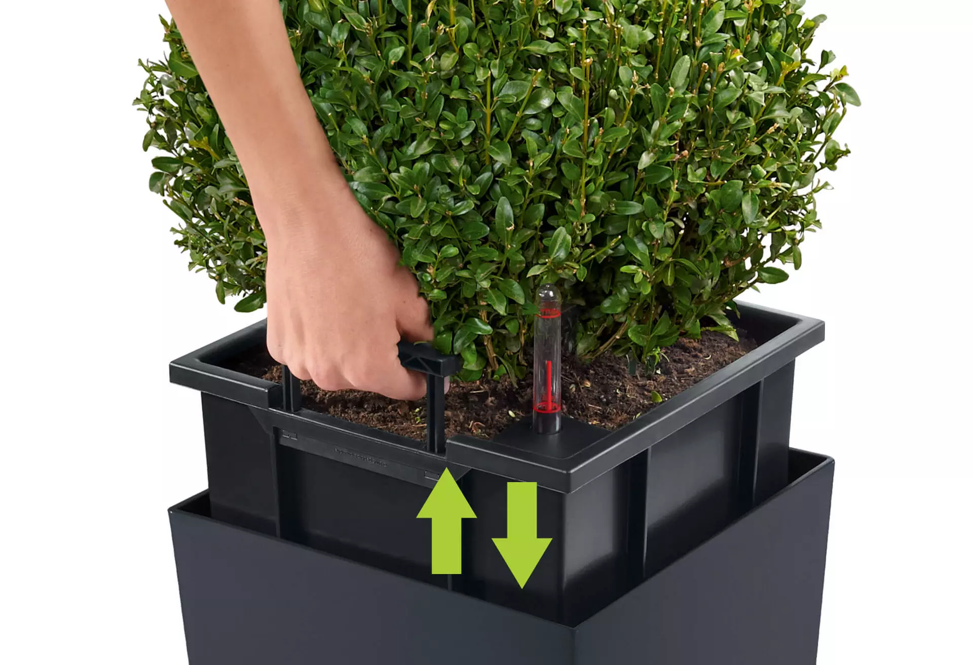 Visuose CUBE Premium modeliuose yra keičiamas augalų įdėklas, todėl augalų priežiūra tampa dar paprastesnė. Integruota LECHUZA laistymo sistema su 3,8 l, 7,5 l arba 14 l vandens rezervuaru užtikrina optimalų drėgmės kiekį Jūsų augalams.
