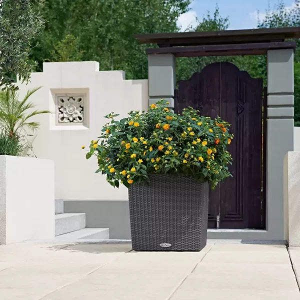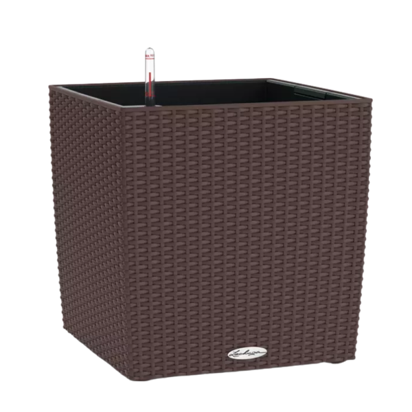 Natūralaus pinto paviršiaus vazonai sukuria harmoningą, jaukų vaizdą, o integruota LECHUZA laistymo sistema užtikrina, kad augalai visada gautų reikiamą vandens kiekį.