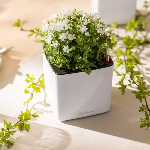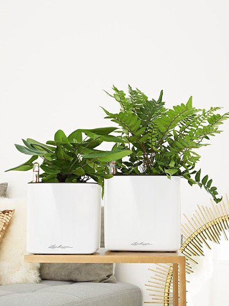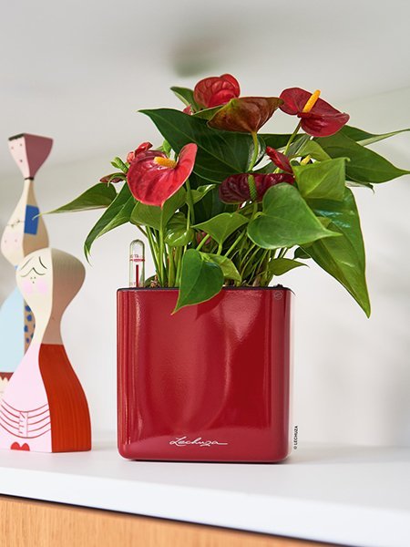 Su LECHUZA laistymo sistema augalų priežiūra tampa itin paprasta. Tiesiog įdėkite augalą į Glossy kolekcijos vazoną – persodinti nereikės! Įmontuota laistymo lazdelė tolygiai tiekia drėgmę šaknims, o vandens lygio indikatorius leidžia lengvai patikrinti, kada reikia papildyti vandens.