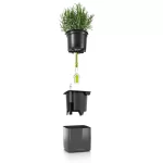 Išorinis vazonas + vidinis vazonas su indikatoriumi + kaištis drėkinimui