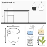 NIDO Cottage – tai pakabinamas vazonas, kuris suteiks jūsų erdvei žavesio. Komplekte yra nerūdijančio plieno trosas tvirtinamas pakaba, užtikrinanti saugų ir stabilų vazono kabėjimą.