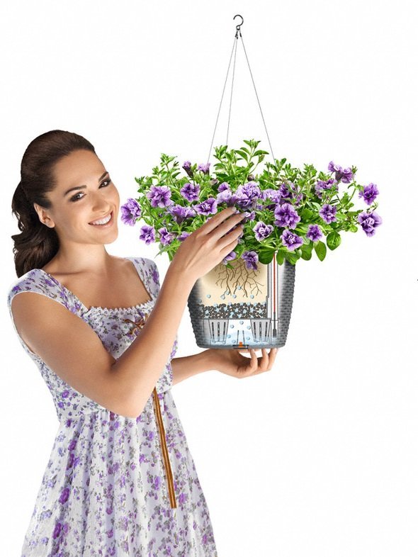Šį vazoną galite naudoti ne tik pakabintą – jis puikiai tinka ir kaip stalo vazonas, dedamas ant lygaus paviršiaus.
