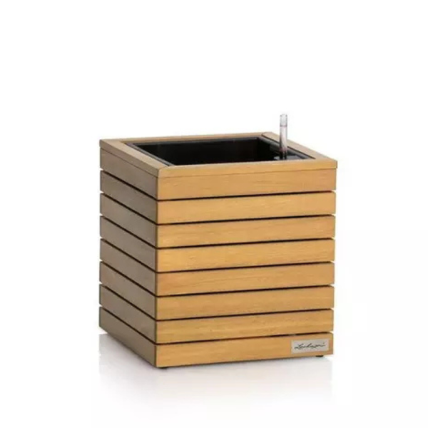 Alyvuotas medienos paviršius apsaugo gaminį nuo drėgmės ir saulės poveikio, todėl vazonas puikiai tinka tiek namų interjere, tiek lauke. Nuimamas perpildymo varžtas leidžia pertekliniam lietaus vandeniui lengvai nutekėti.