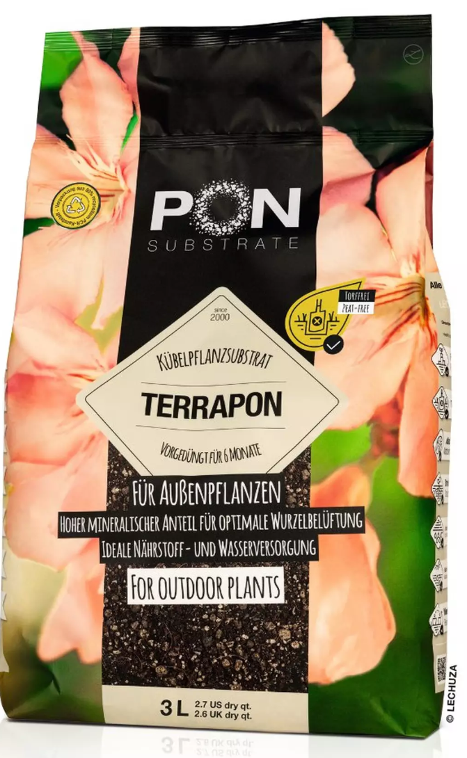 Kadangi substratas yra ypač stabilus, jis suteikia tvirtą atramą ir stabilumą net tankiai sodintiems augalams vazone. Be to, TERRAPON yra iš anksto patręštas, nuolat išskirdamas maistines medžiagas vazoniniams augalams 6–8 mėnesius. Dėl šių maistinių medžiagų jūsų lauko augalai gali toliau augti ir žydėti.