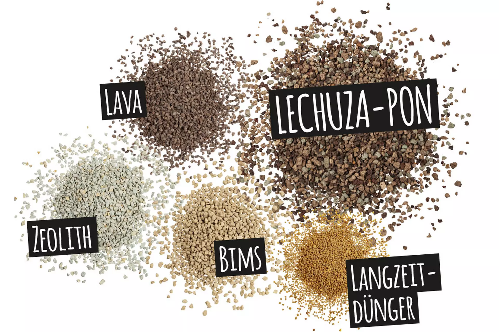 LECHUZA-PON sudaro aukštos kokybės ceolitas, pemza ir lava, o speciali jo sudėtis užtikrina matmenų stabilumą, nes PON, skirtingai nei dirvožemis, nesuspaudžia ir nesulimpa. Grynai mineralinis pagrindas nesuteikia vietos grybeliams ar kenkėjams, todėl idealiai tinka alergiškiems žmonėms.