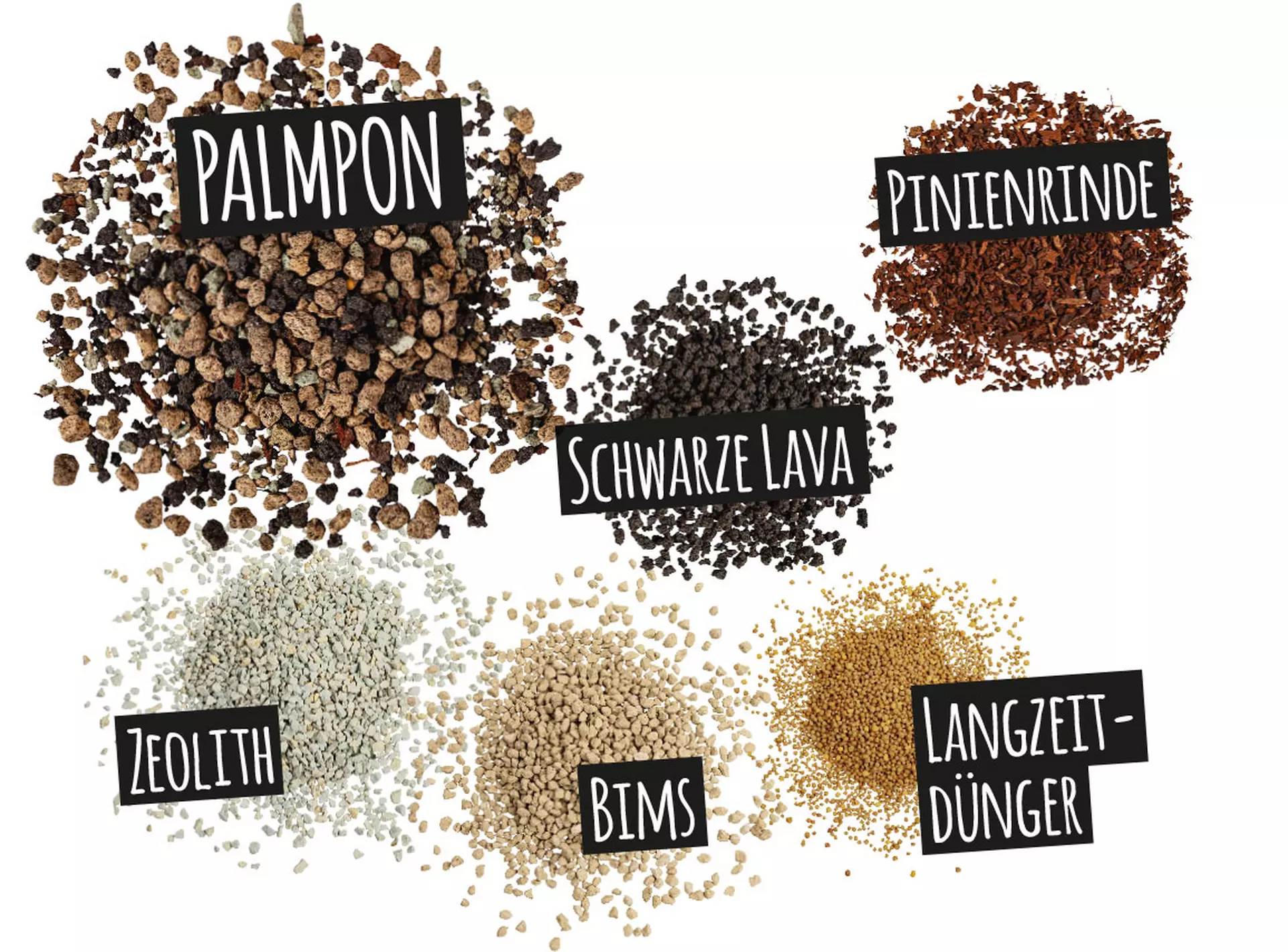 Grynai mineralinis sodinimo substratas PALMPON optimaliai reguliuoja vandens tiekimą palmėms ir kitiems tropiniams augalams bei skatina šaknų aeraciją. Jis tinka visoms palmėms ir Viduržemio jūros regiono augalams. Substratas praturtintas juodąja lava, kuri veikia kaip papildomas šilumos rezervuaras ir suteikia išskirtinę išvaizdą. Dėl šios ypatingos sudėties pagerėja oro cirkuliacija substrate, todėl augalas neužmirksta. Tai taip pat suteikia augalams stabilumo ir tvirtumo.