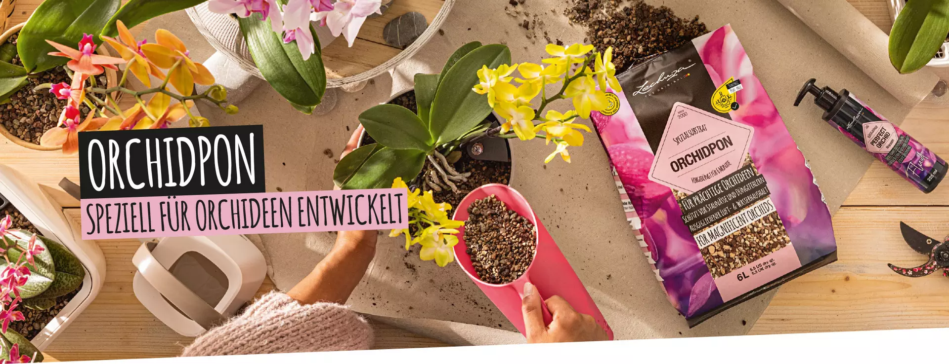 Specialus substratas ORCHIDPON suteikia orchidėjoms idealias sąlygas gausiam žiedų žydėjimui ir buvo sukurtas specialiai šiems išskirtiniams tropiniams augalams. Jį sudaro organiniai ir mineraliniai komponentai, be durpių gamtos labui. Pridėtos huminės medžiagos sumažina pH vertę, sukurdamos šiek tiek rūgščią dirvožemio aplinką, kurią orchidėjos mėgsta. Šios huminės medžiagos taip pat stiprina šaknis ir gerina dirvožemio struktūrą.