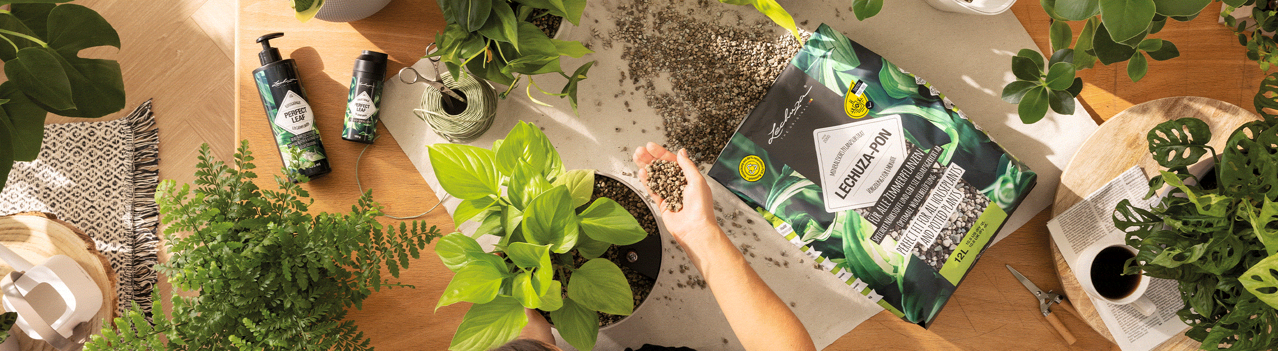 LECHUZA-PON praturtintas LECHUZA PERFECT LEAF lėtai išsiskiriančiomis trąšomis, kurios patikimai aprūpina kambarinius augalus visomis reikalingomis maistinėmis medžiagomis 6–8 mėnesius.