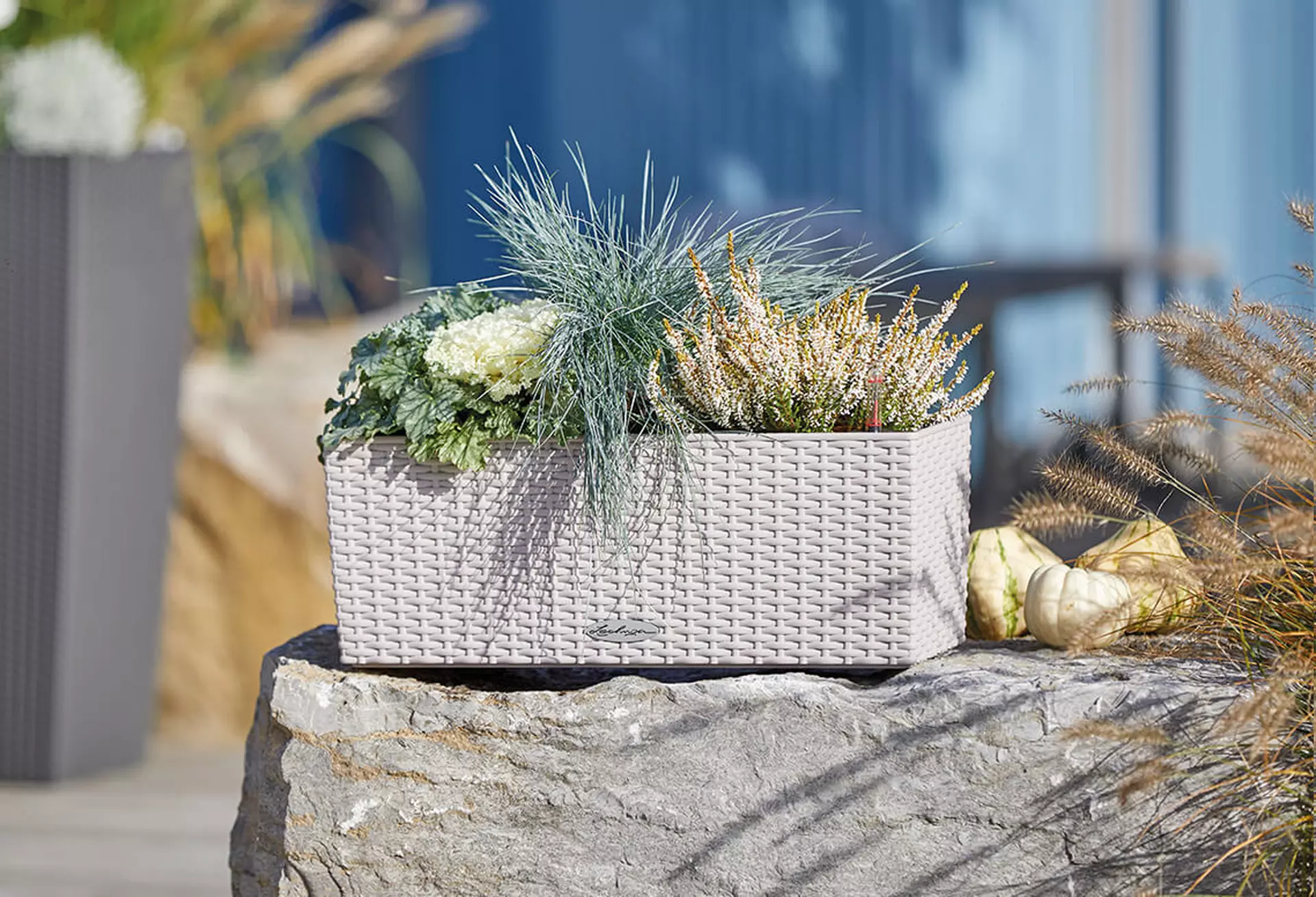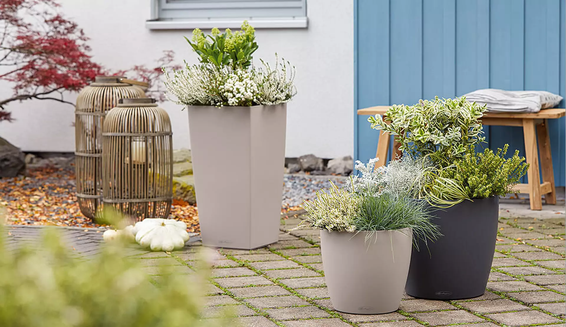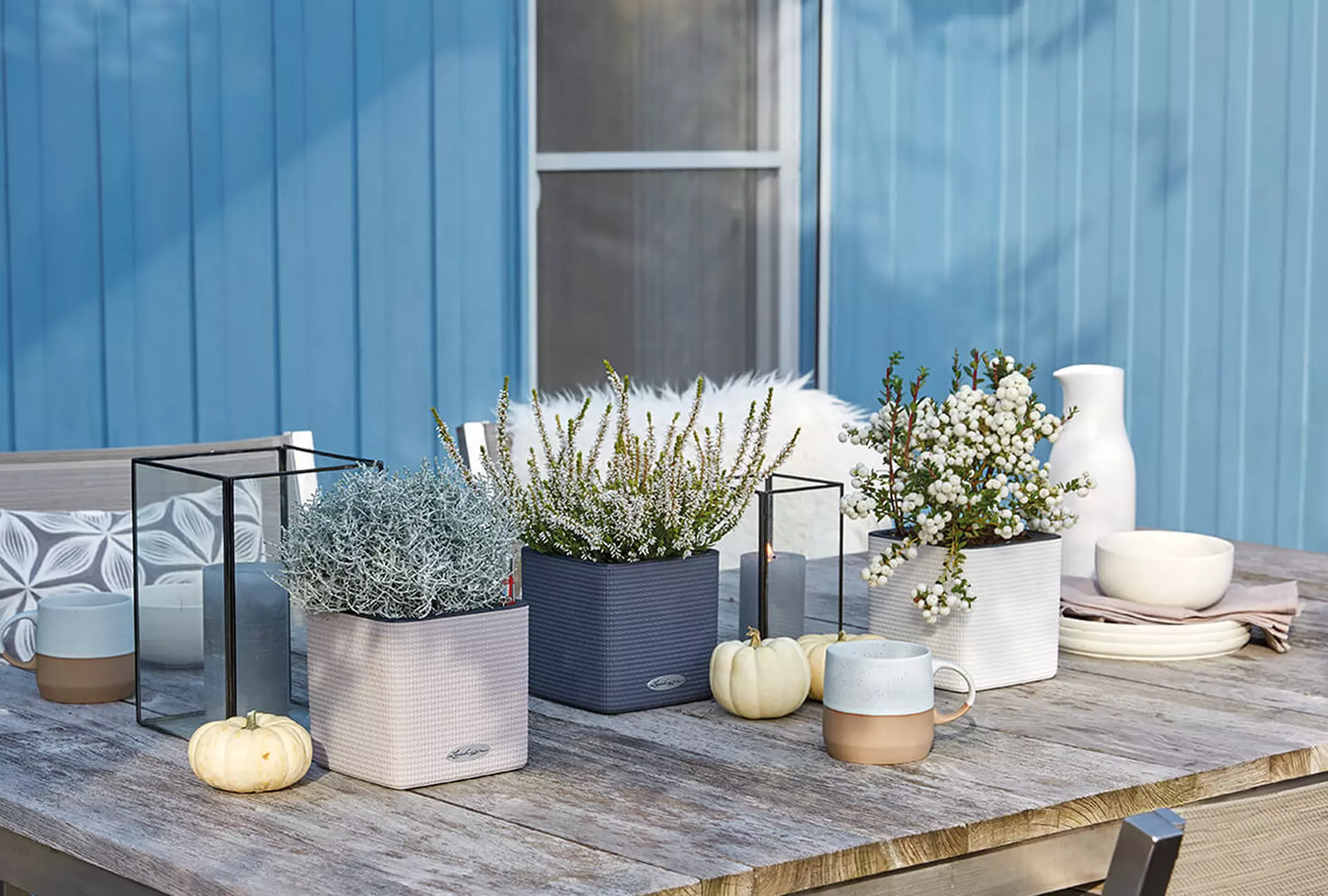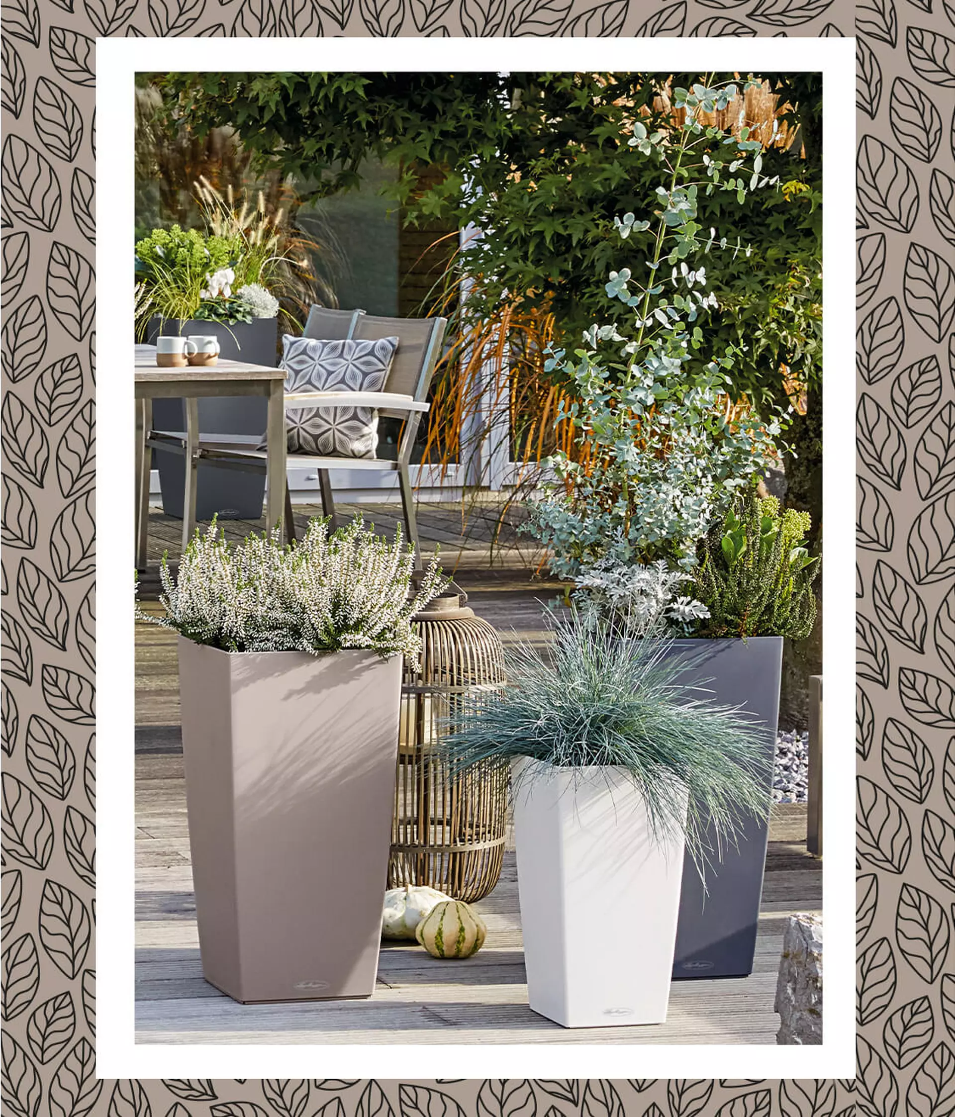 LECHUZA vazonai iš „Cottage and Color“ kolekcijos puikiai tinka rudens sodui. Pagaminti iš atsparaus oro sąlygoms plastiko, jie gali būti naudojami lauke ištisus metus.